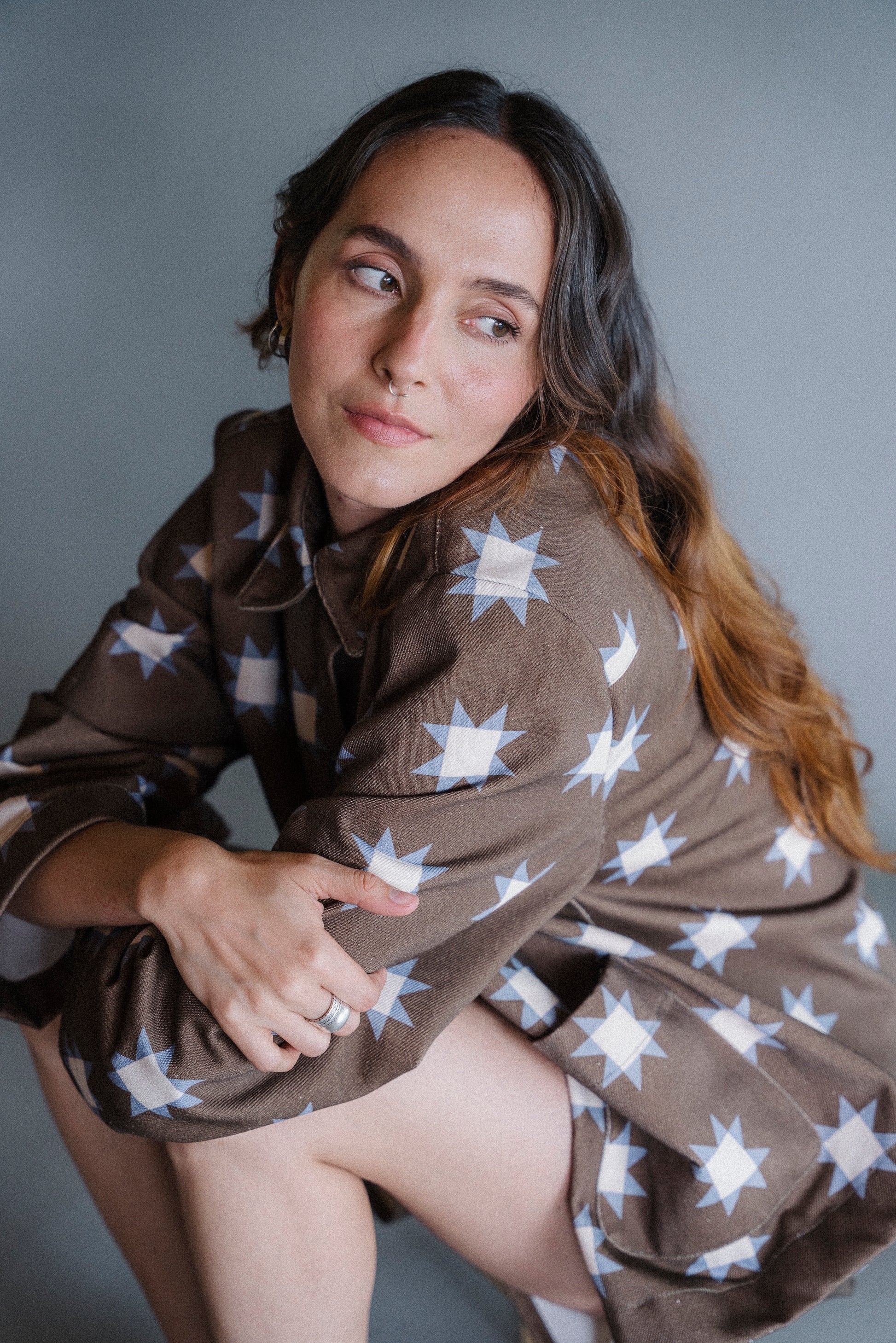 La ilustración fue hecha y pensada por Laura Mejía Posada, especialmente para Conga, para esta colección, para esta prenda. Todo está donde tiene que estar.