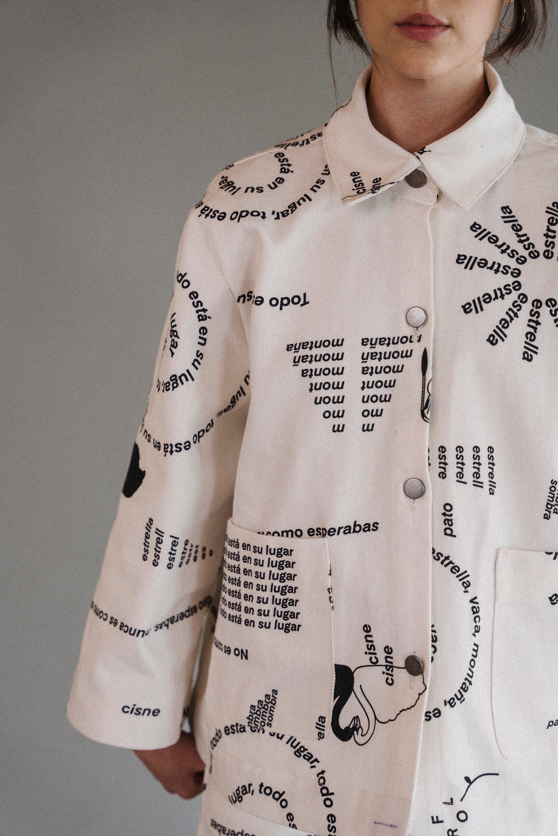 La ilustración fue hecha y pensada por Laura Mejía Posada, especialmente para Conga, para esta colección, para esta prenda. Todo está donde tiene que estar.