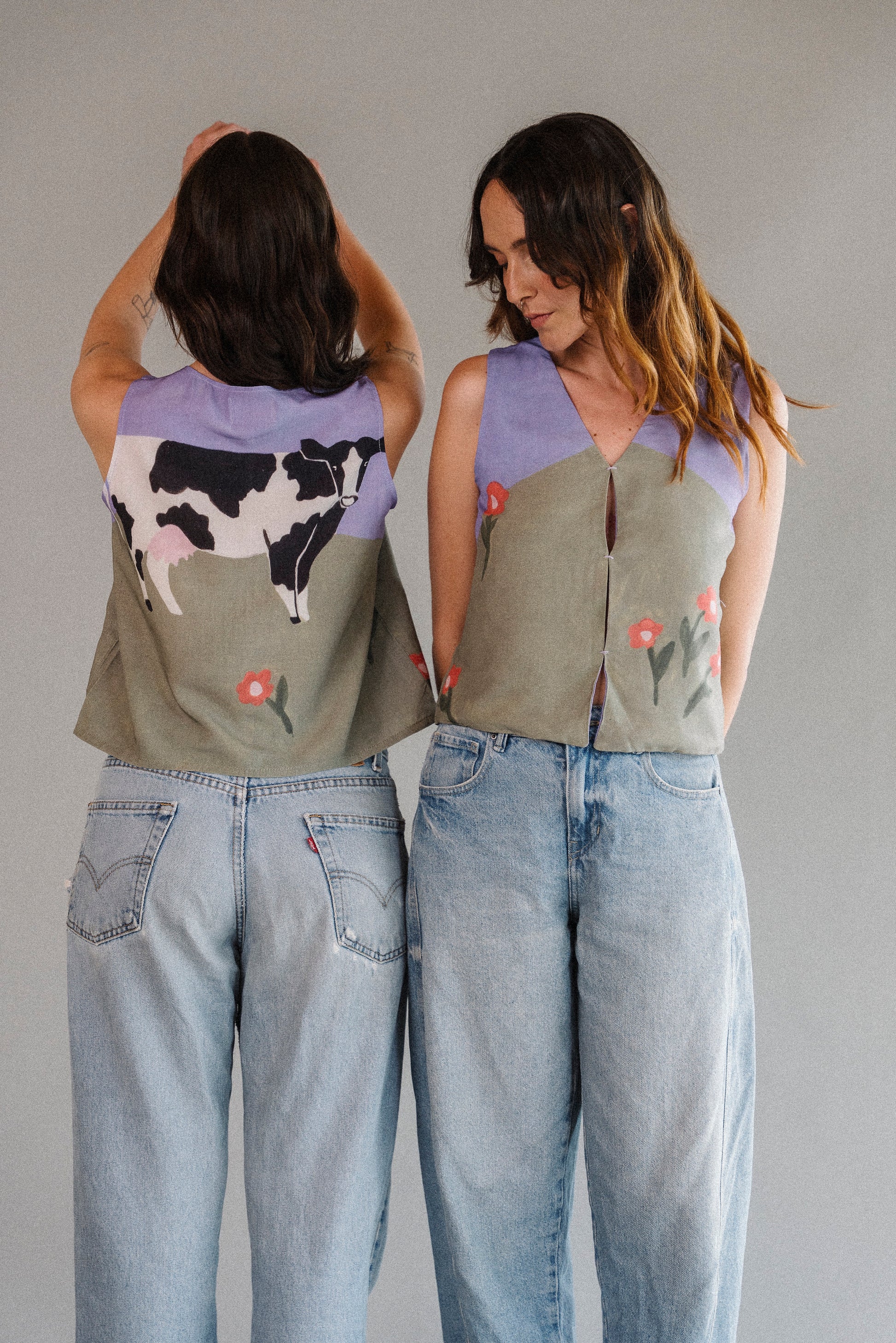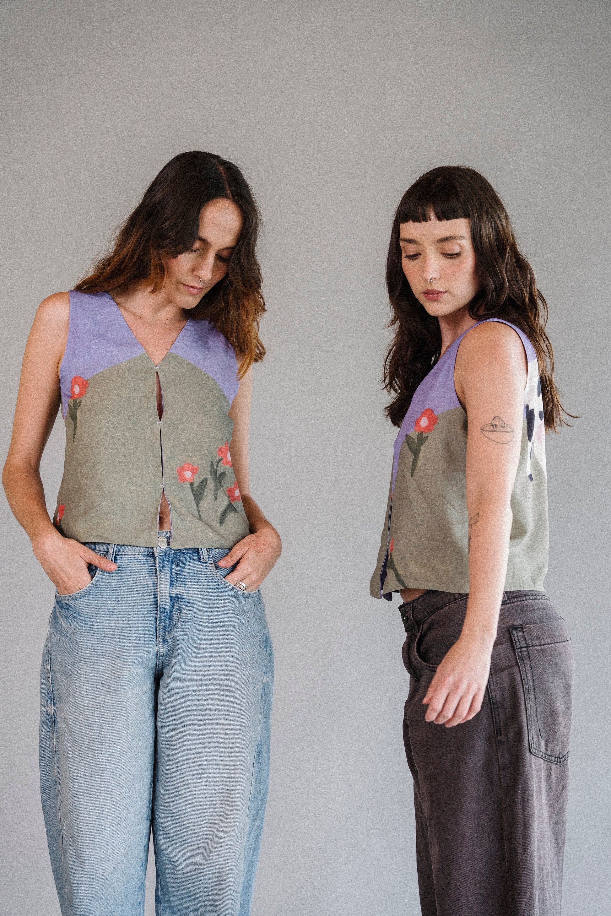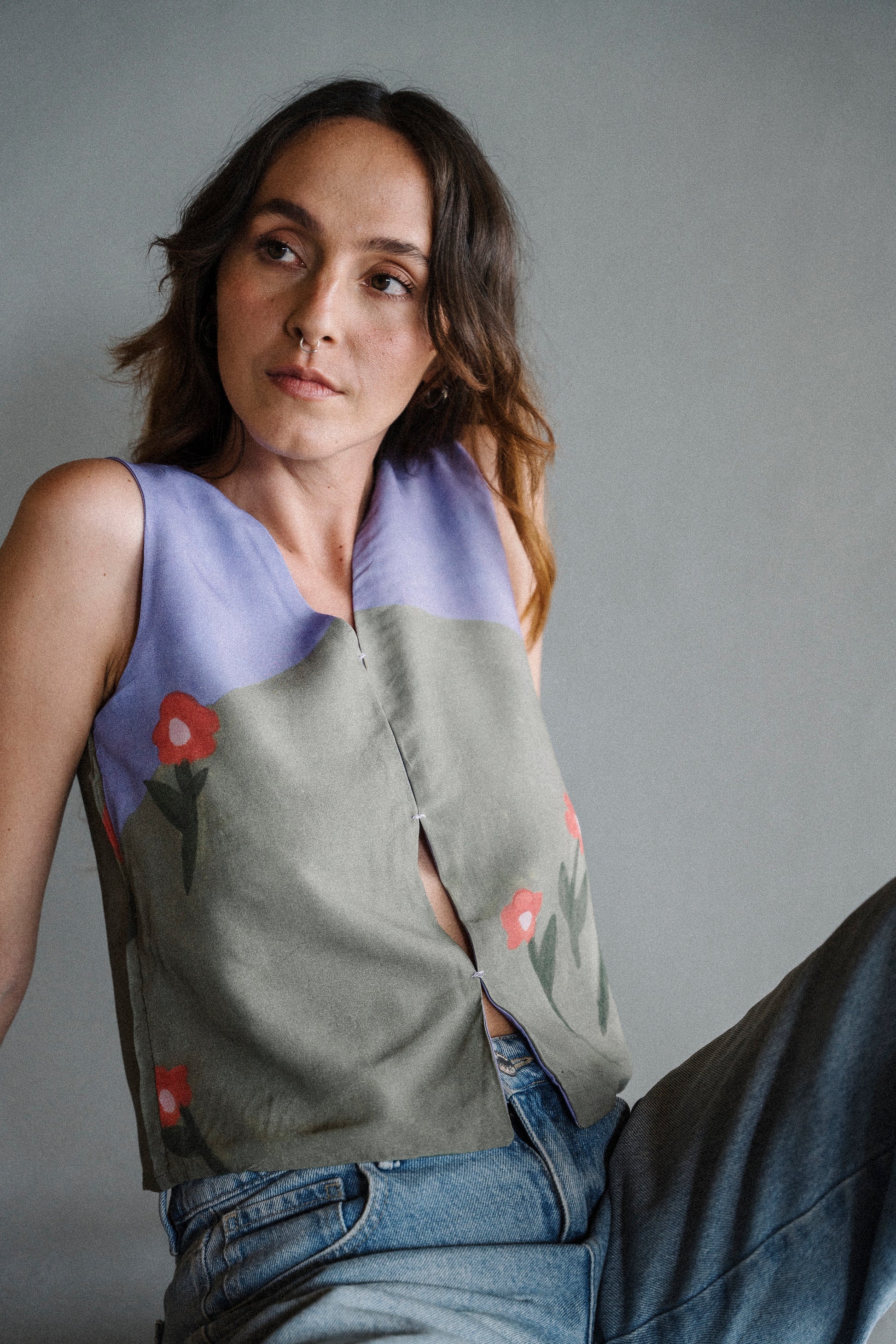 Es una camisa o un chaleco. Sin costuras y doble faz. Cuello en uve. Elegante o casual.