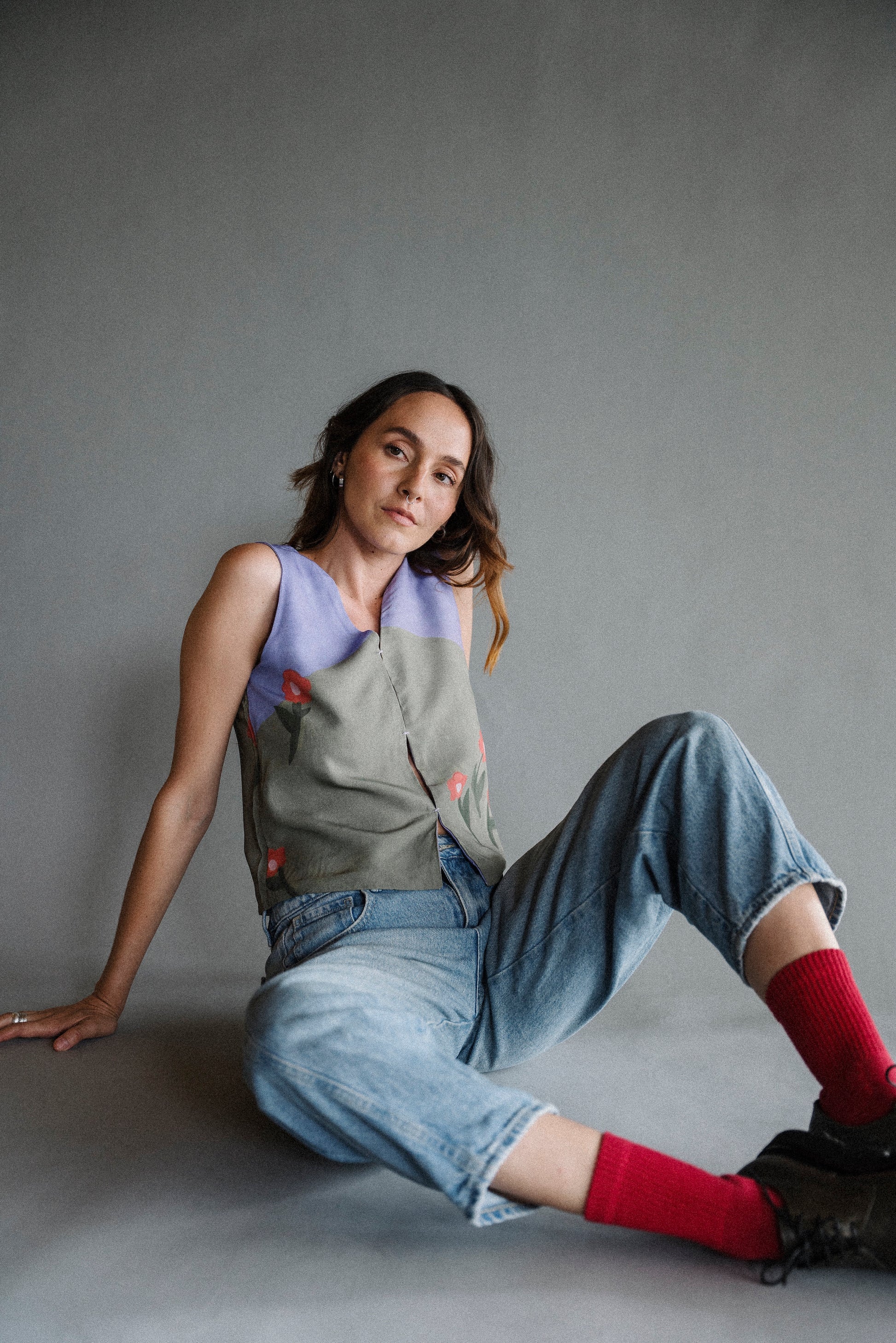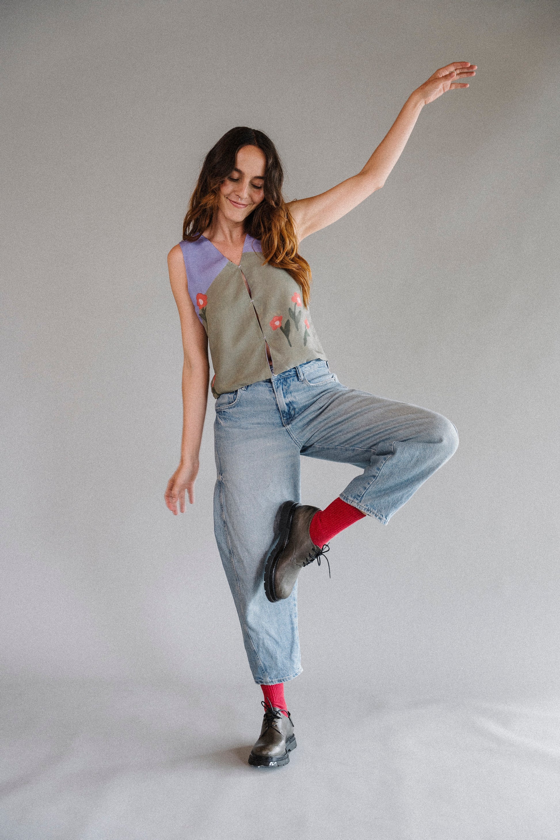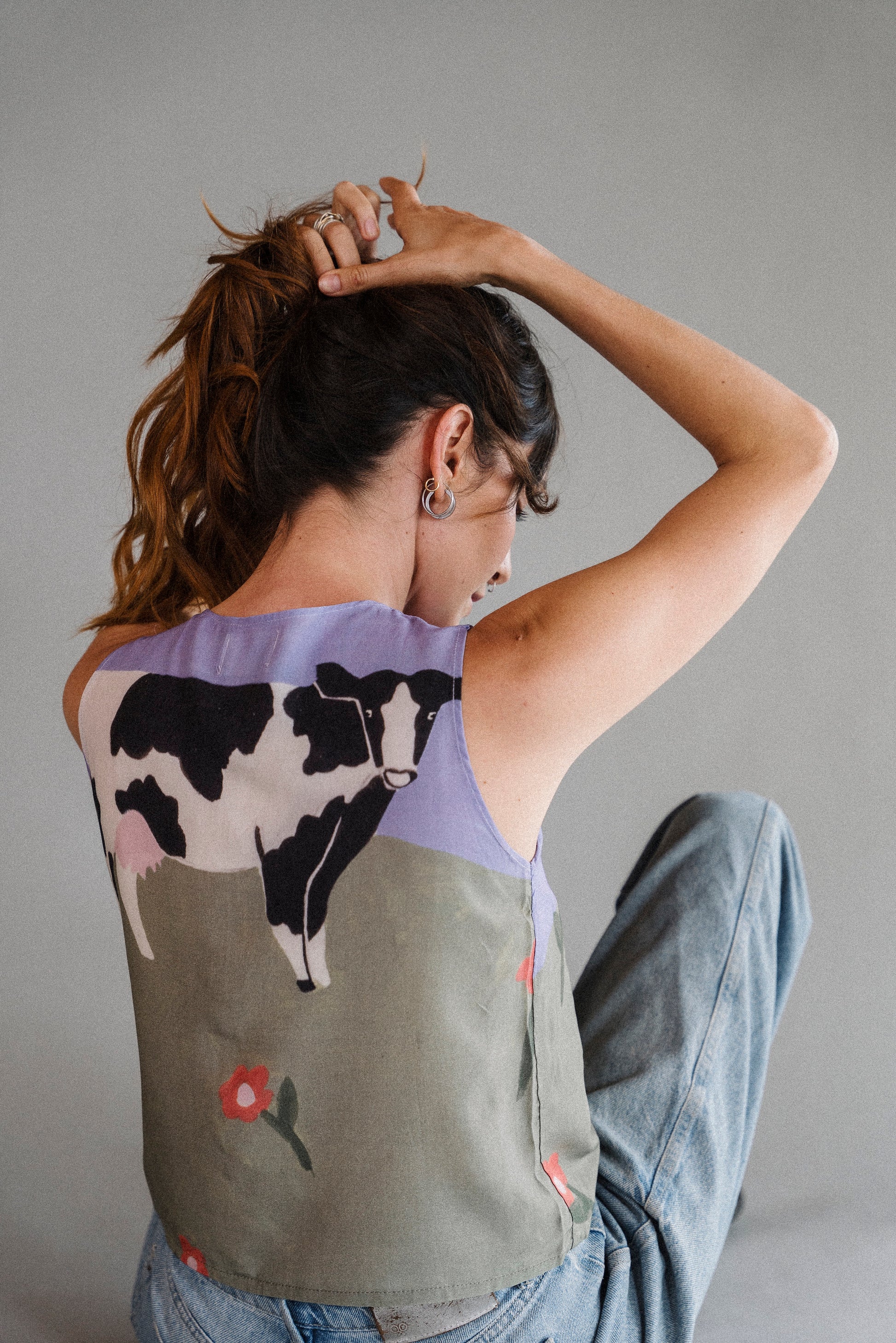 Es una camisa o un chaleco. Sin costuras y doble faz. Cuello en uve. Elegante o casual.