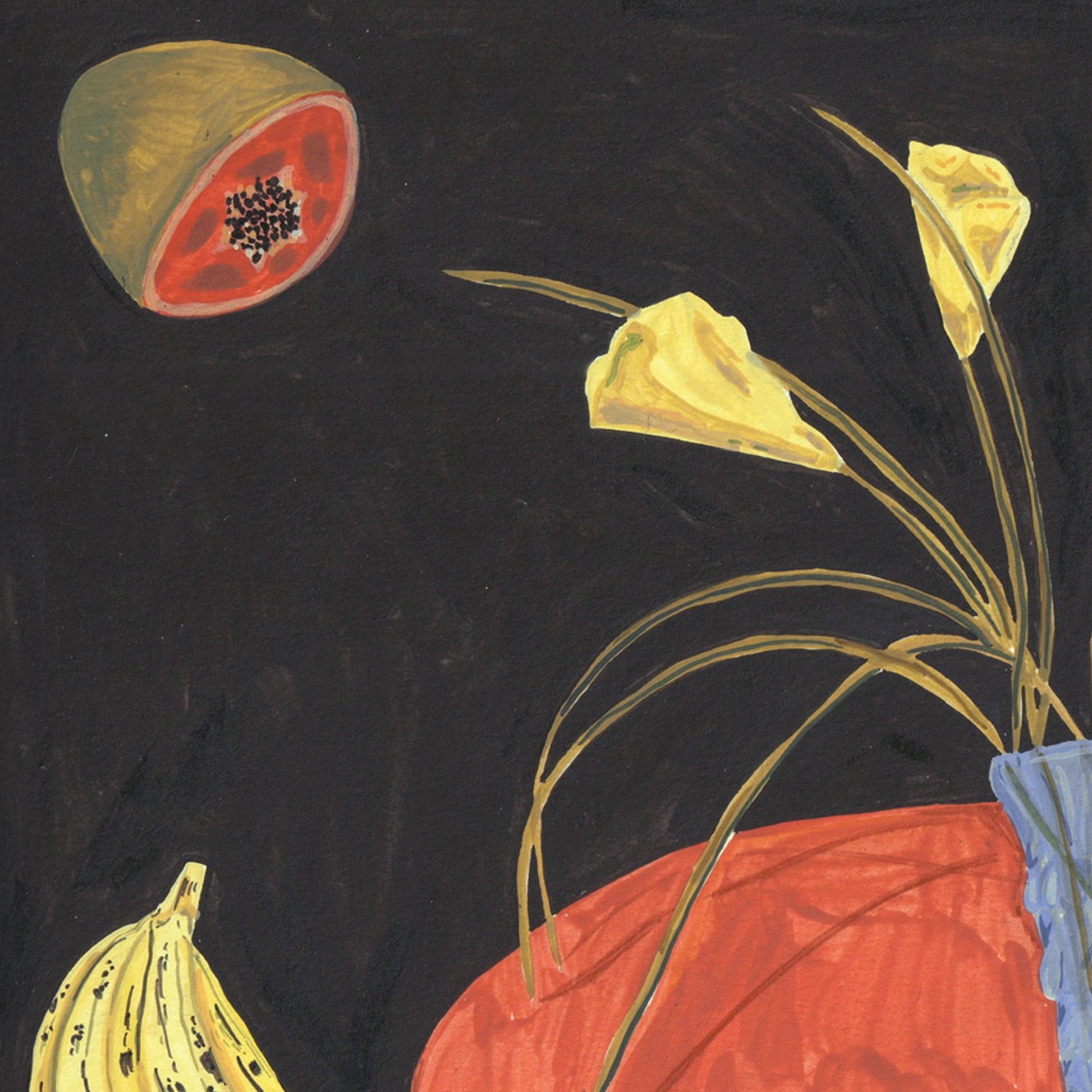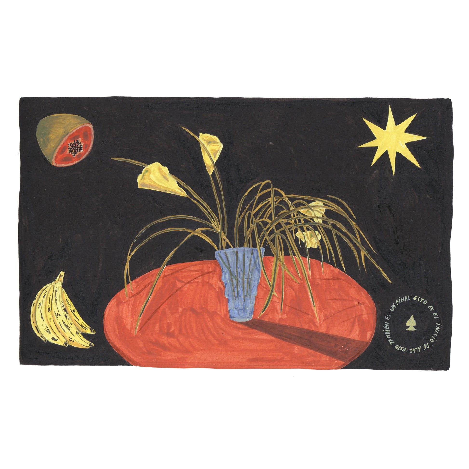 Las frutas de la mañana, las flores en la mesa. La luz amarilla. El punto, el inicio.