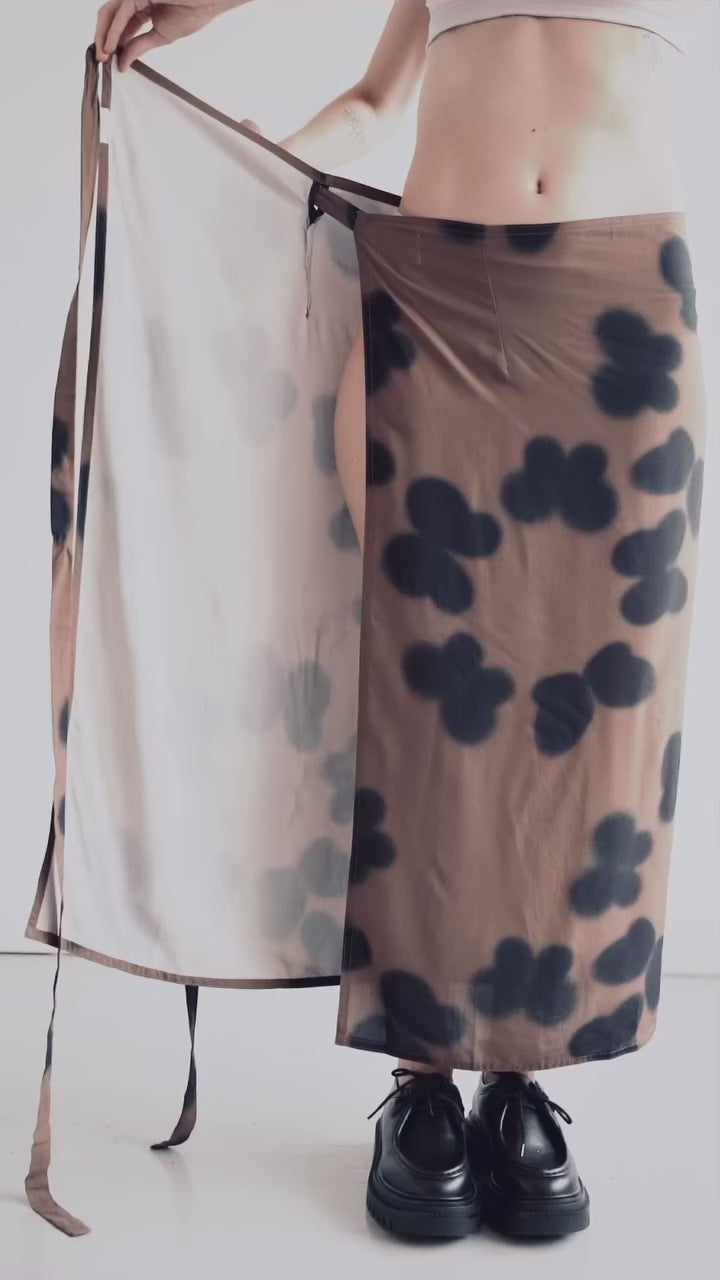 Falda estilo pareo, con tiras ajustables para amarrar a un costado.
