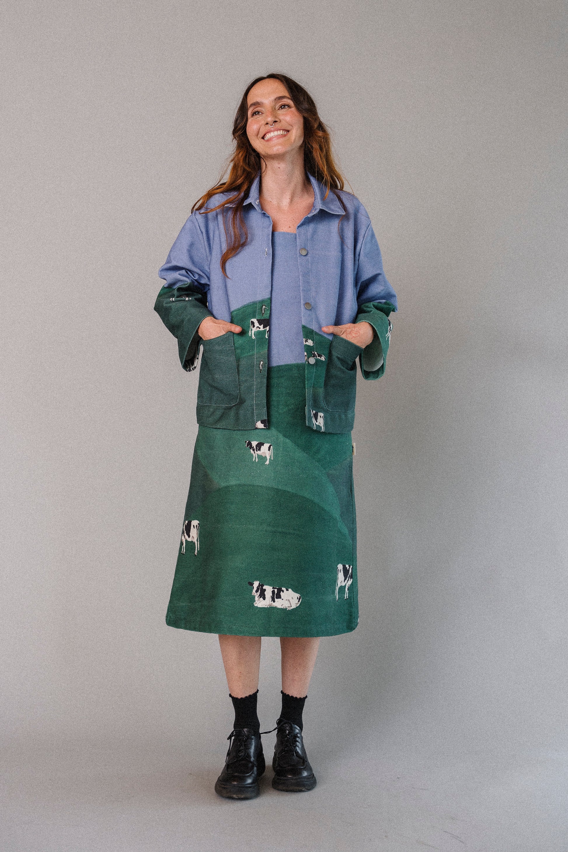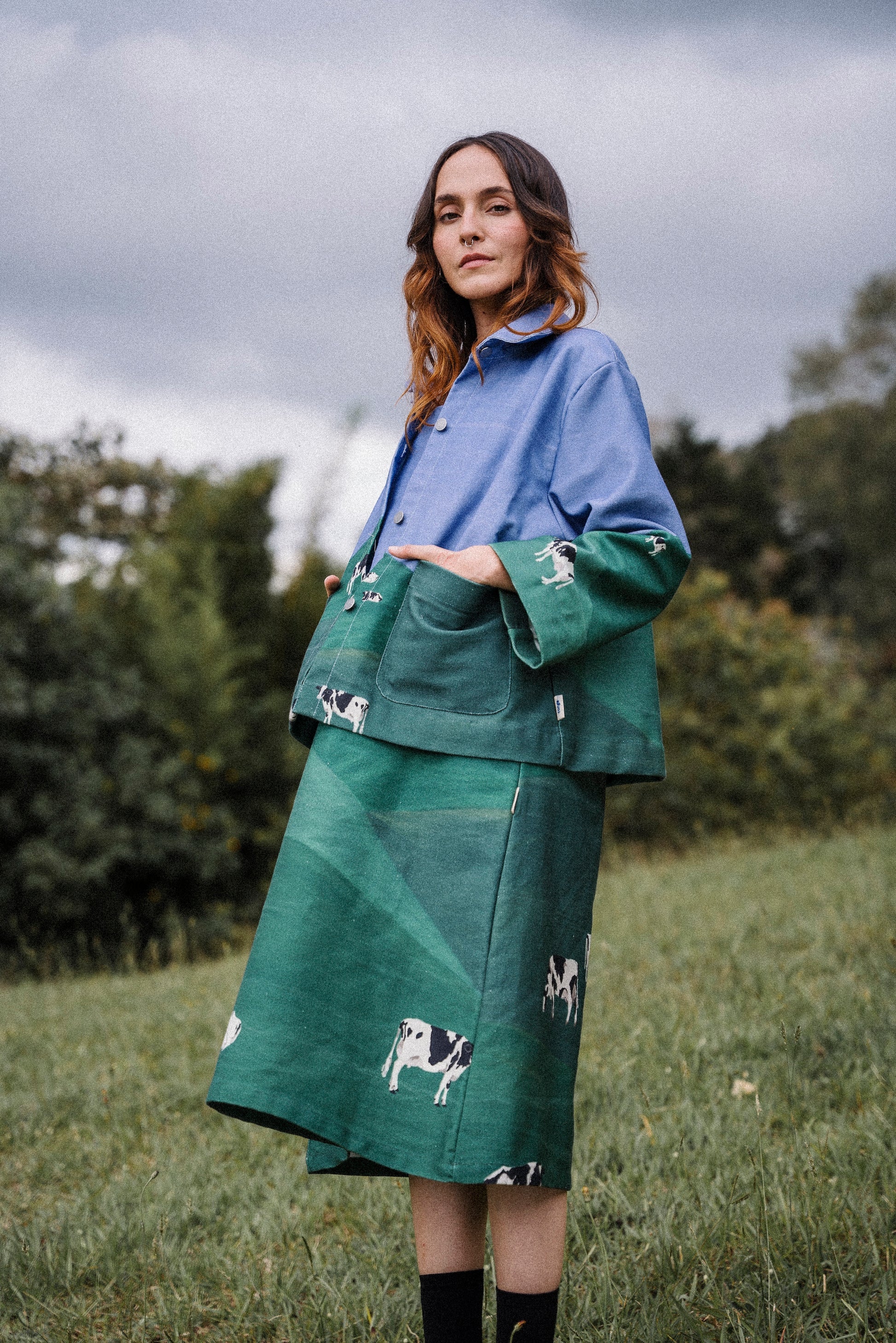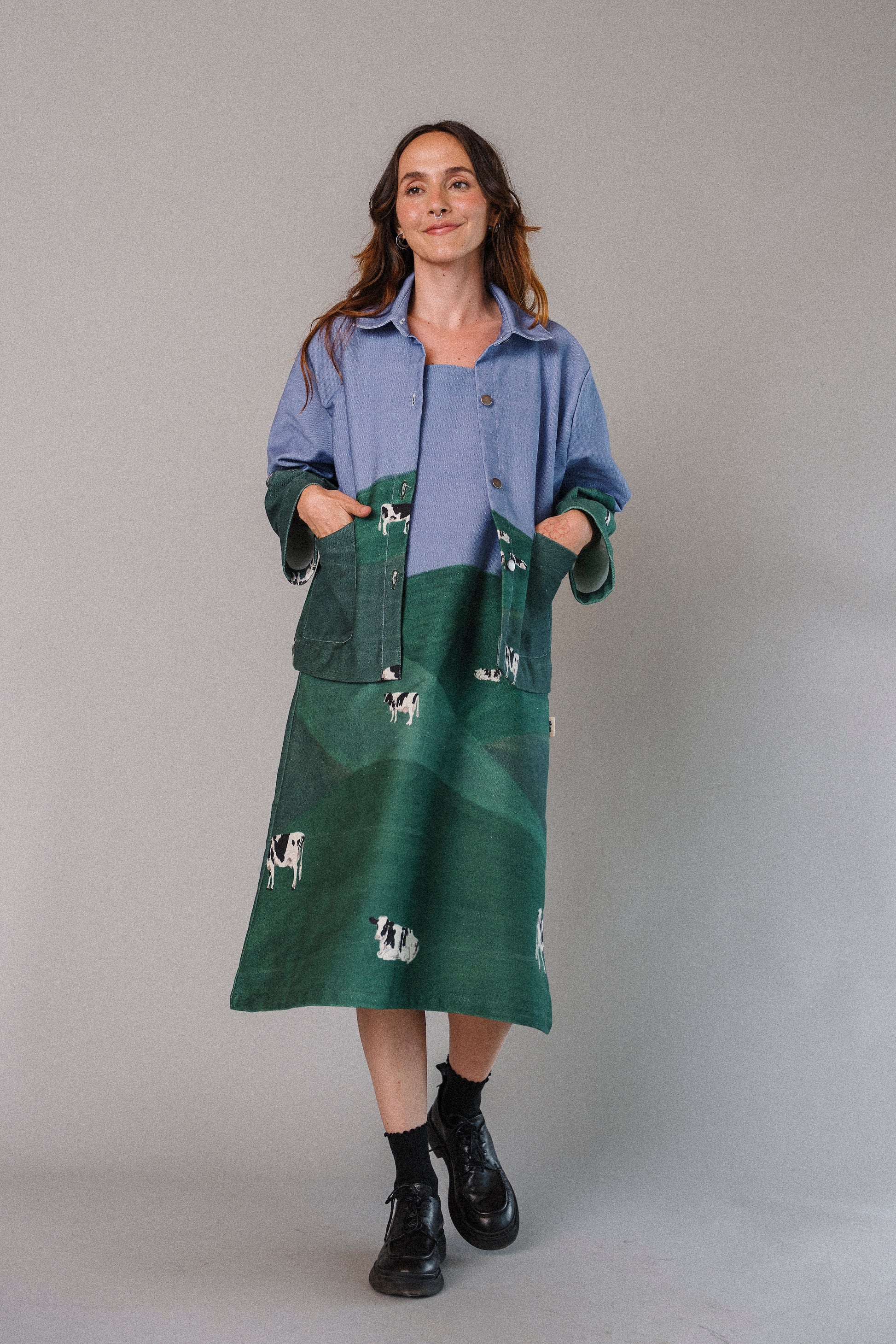 La ilustración fue hecha y pensada por Laura Mejía Posada, especialmente para Conga, para esta colección, para esta prenda. Todo está donde tiene que estar.