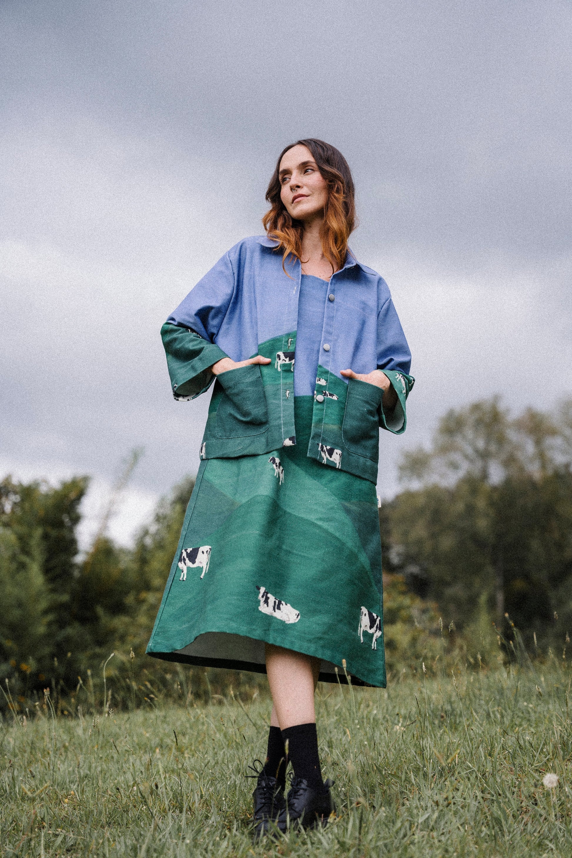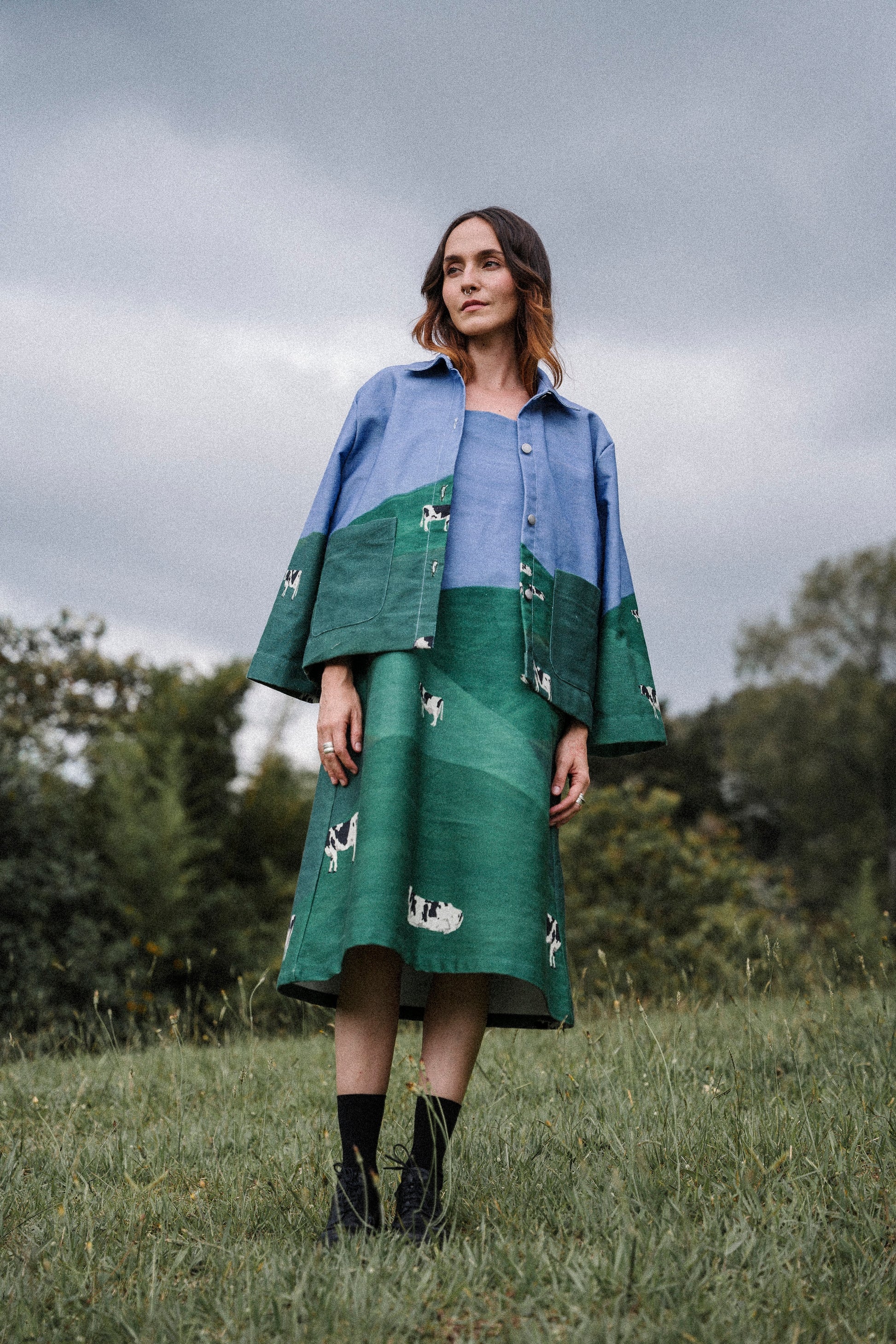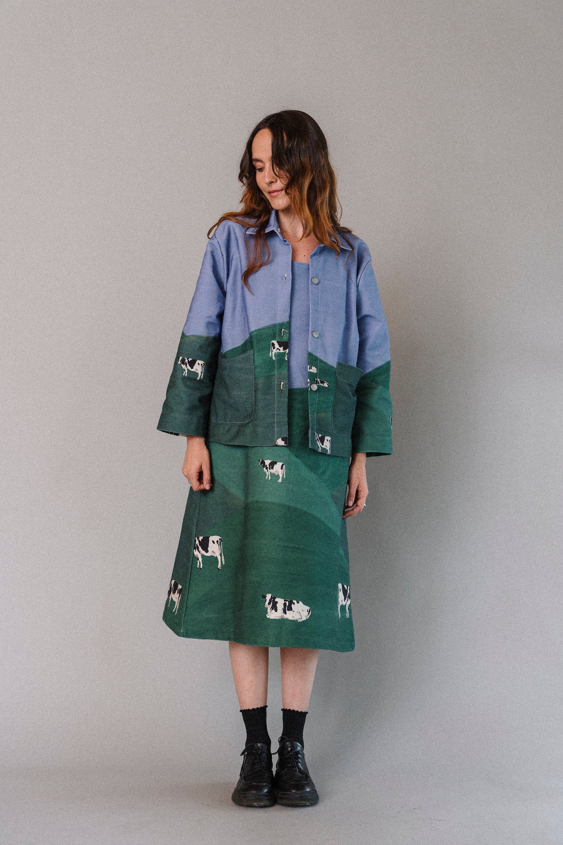 La ilustración fue hecha y pensada por Laura Mejía Posada, especialmente para Conga, para esta colección, para esta prenda. Todo está donde tiene que estar.