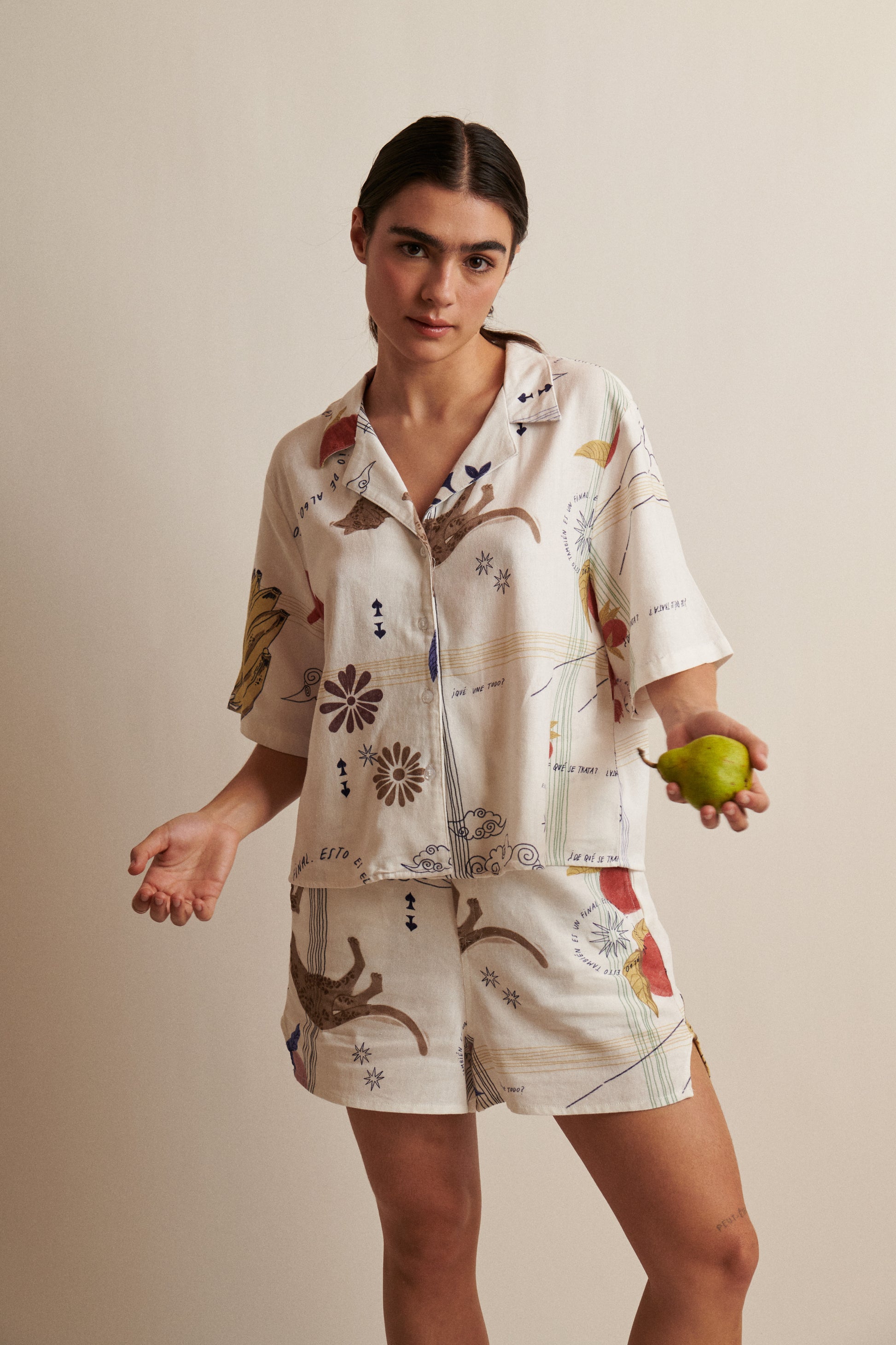 Short con tiro alto y bolsillos laterales. Tela 60% lino, 40% rayón.