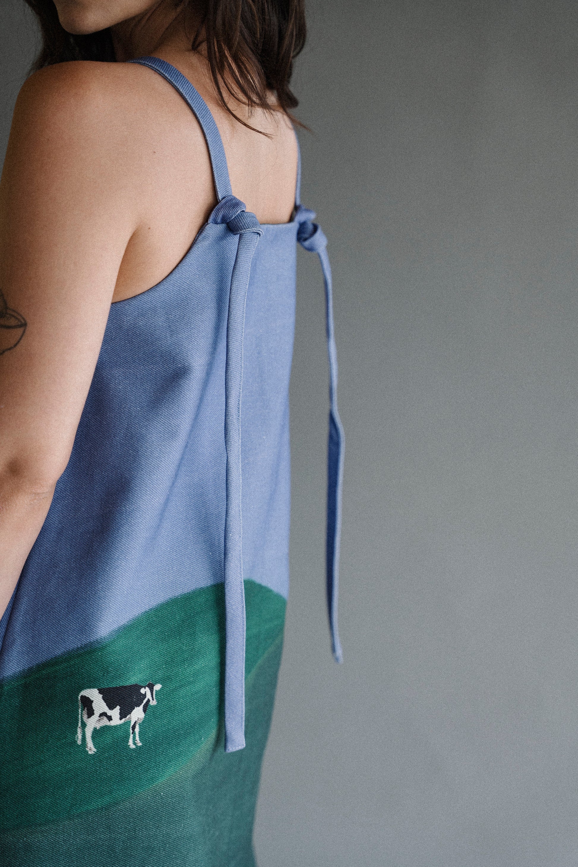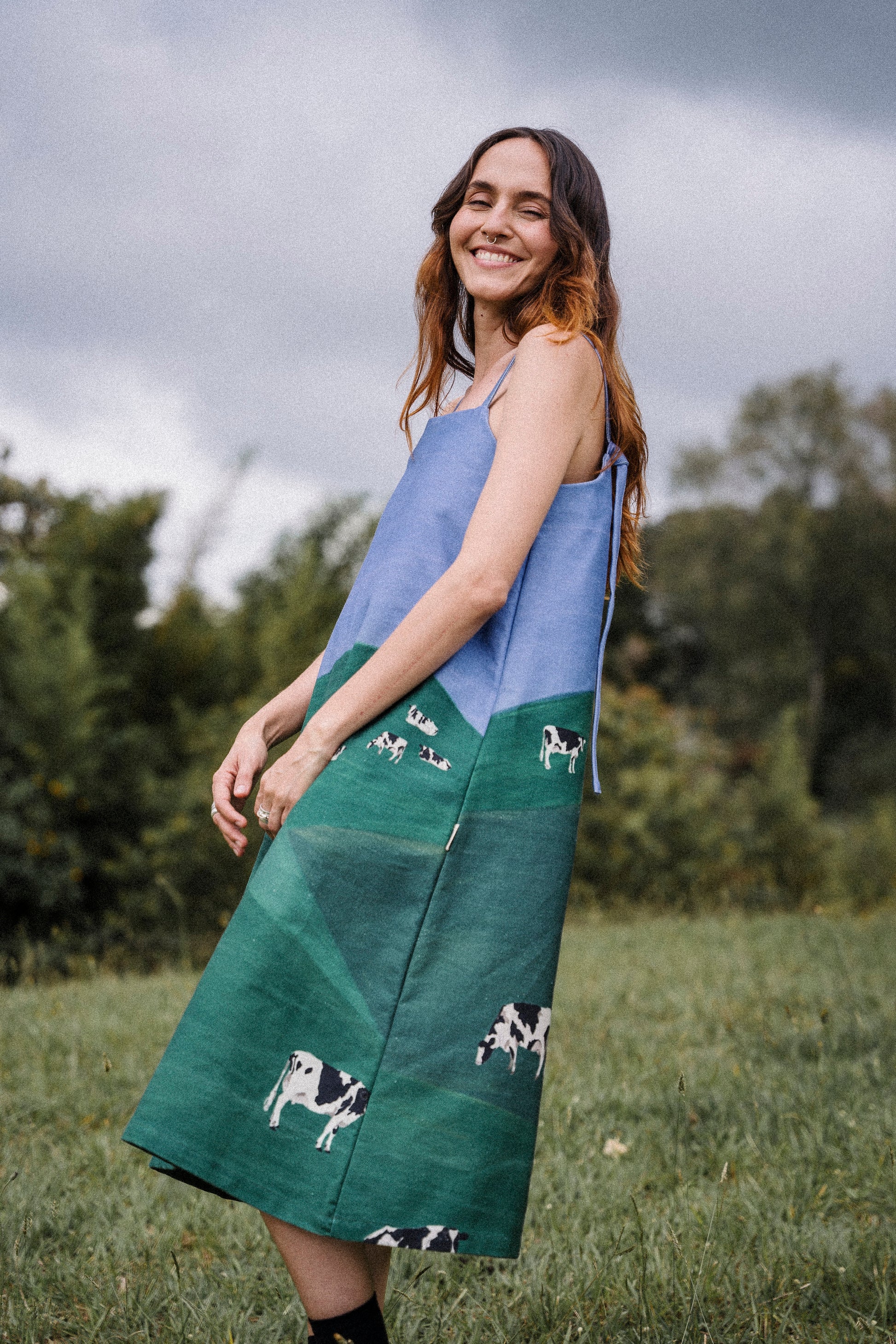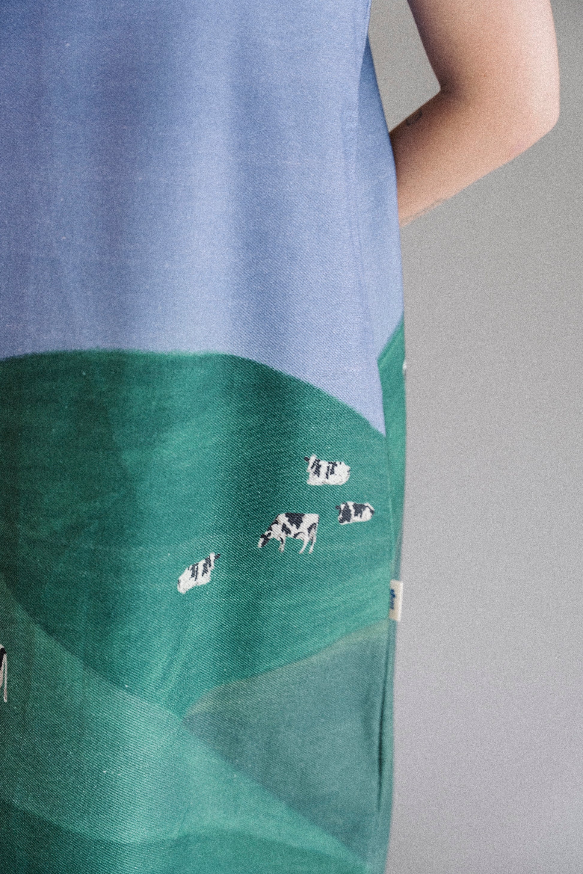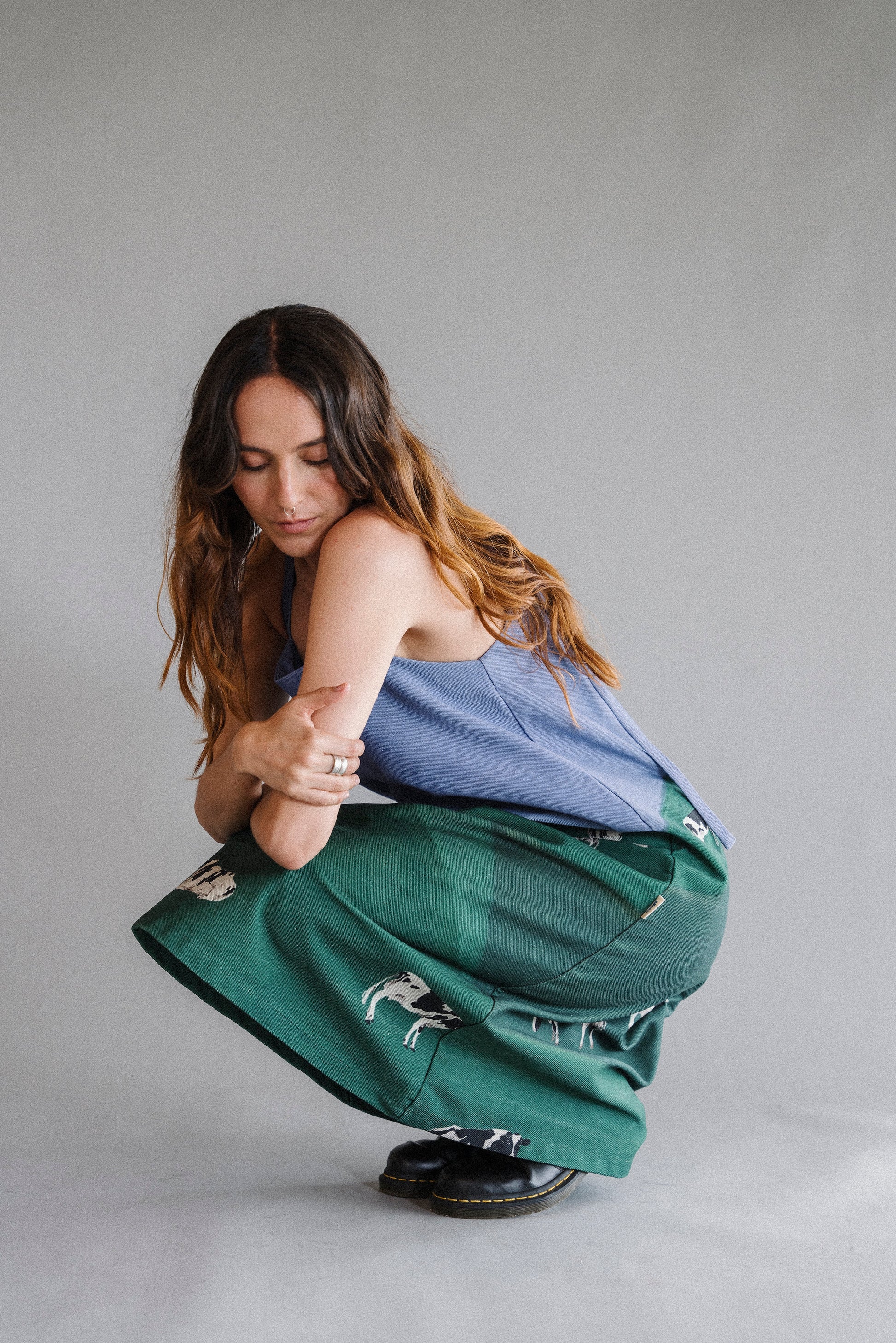 Fue un hito, lo más difícil de hacer de esta colección. Lograr que las montañas del print quedaran exactamente donde queríamos a la hora de cortar la tela, sin crear muchísimo desperdicio, nos tomó muchos ensayos y errores. Aprendimos mucho.
